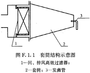 套筒(测定回、排风高效过滤风口时需要使用,罩住整个入口,使检漏范围包括边框,长度应使通过气流时间为0.5s~1s,见图F.1.1)。