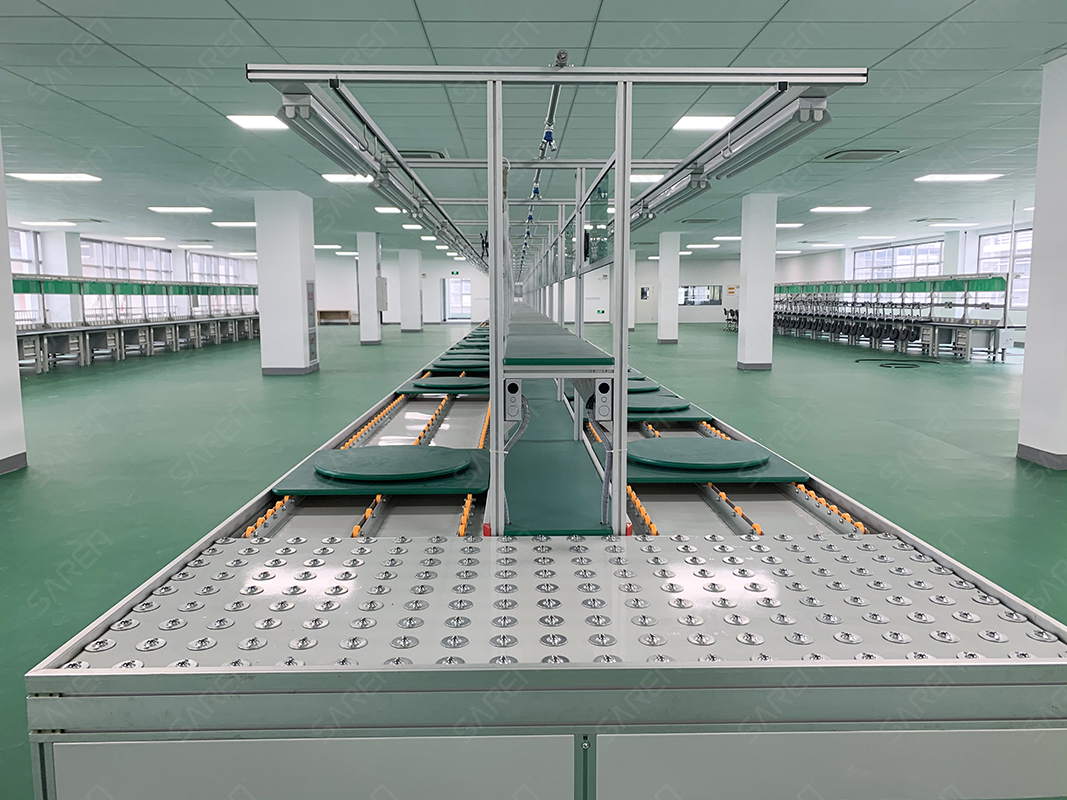 三层电控车间地面、吊顶全部做防静电处理,且地面区域以6S车间标准划分标示线(热熔胶)。地面整体无缝,并与墙面一体化,环氧铺至墙面(包括与土建墙接触位置),与墙板平齐。